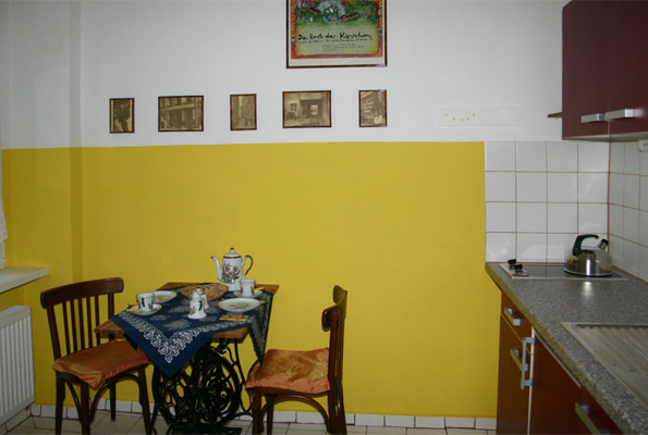 La cuisine est équipée d'une plaque vitro-céramique, d'un réfrigérateur et dans les placards vous trouverez tous les ustensiles de cuisine nécessaires : casseroles, vaisselle, couverts ...